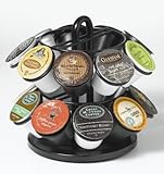 The Nifty mini carousel for K-Cups, you can elegantly display all your favorite types of K-Cups, while the picture is not much space. The mini-carousel can hold up to 18 K-Cups. The Nifty is mini carousel for K-Cups for dorm rooms, small kitchen and small offices. The Lazy Susan base 360-degree rotation allows easy access to your favorite K-Cup. The black powder-coated surface looks elegant on any kitchen countertop.